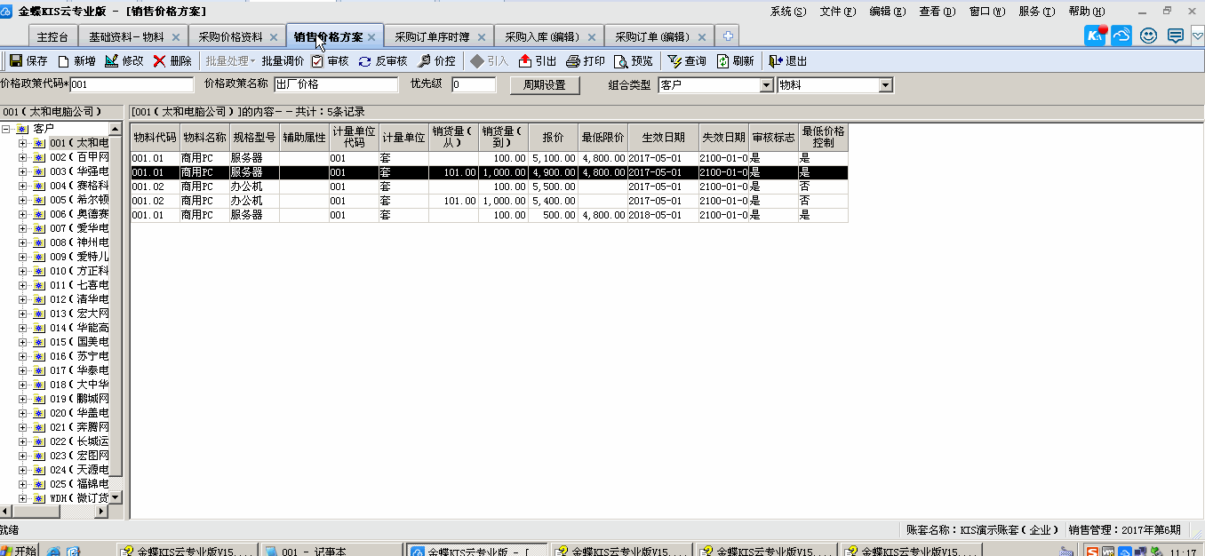 價格資料引入進去之后,系統默認是非審核狀態的,按shift鍵進行全選之后,選擇審核即可。